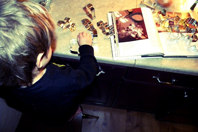 impending our meeting of a certain special little one, Lars and i baked what will be the first of many holiday cookies this season. using a recipe from this book (which i found thrifting last christmas; it's vintage quality is fantastic and the projects in it are truly timeless) we had fun taking turns cutting, frosting and sprinkling our festive shapes. the cookies turned out great and were a hit~ my only challenge was keeping my husband from eating the whole batch... we'll definitely be baking more of these again soon.